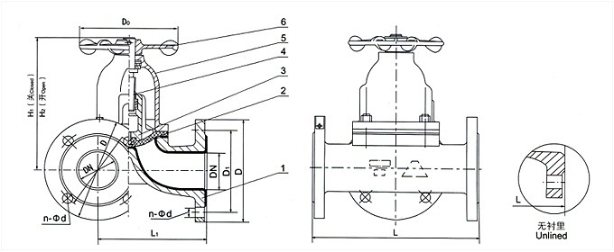 部件列表:1、閥體 2、隔膜 3、閥瓣 4、閥桿 5、閥蓋 6、手輪
