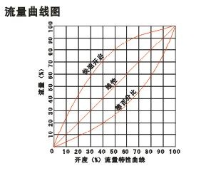 上圖為該種閥門(mén)的流量特性曲線,本廠生產(chǎn)的是其中等百分比特性閥門(mén)。從曲線圖上可知給開(kāi)度一個(gè)相等的變化率,則流量的變化率相等,其特點(diǎn)是開(kāi)度大時(shí)流量大,開(kāi)度小時(shí)則流量小。而工程中大都在流量大時(shí)應(yīng)用,等百分比閥門(mén)恰恰適用這個(gè)要求。根據(jù)這一特點(diǎn),可以自如的予置某更高量(快開(kāi)閥門(mén)和線性閥門(mén)則不具備這種功能)而且當(dāng)需要變化時(shí),還能知道變化量,達(dá)到理想狀態(tài)。
