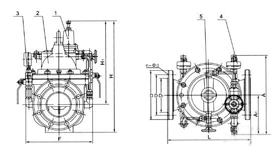 1、導(dǎo)閥2、主閥3、球閥4、壓力表5、針表