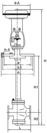 由調(diào)節(jié)器來的信號壓力輸入氣動薄膜執(zhí)行機(jī)構(gòu)的氣室,產(chǎn)生推力,通過連接桿件帶動閥芯,閥芯位置的變化使閥的流通截面積變化,實(shí)現(xiàn)對介質(zhì)流量的調(diào)節(jié)。