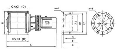 A1×A | B1×B | C1×C | DN | D | D1 | H | L | n-d | 傳動功率型號 | 功率KW | 卸灰能力 m3/h | 重量kg |